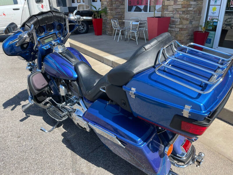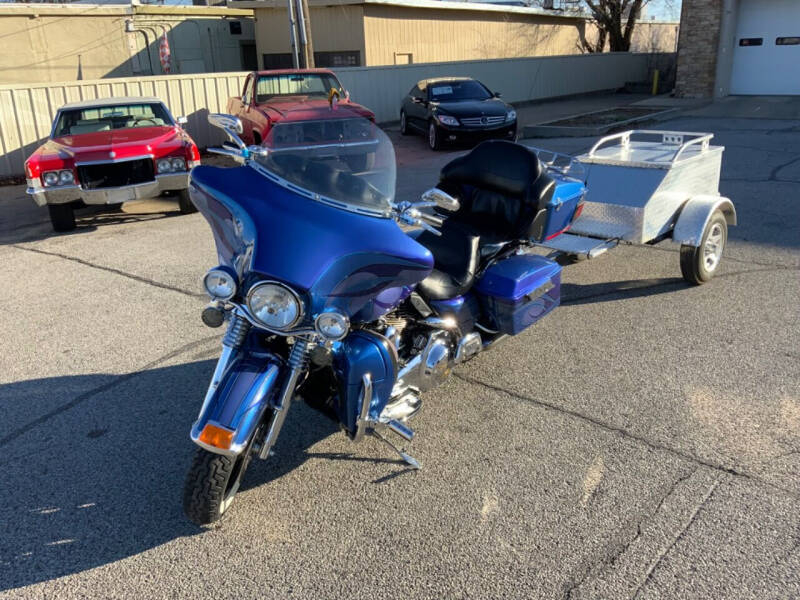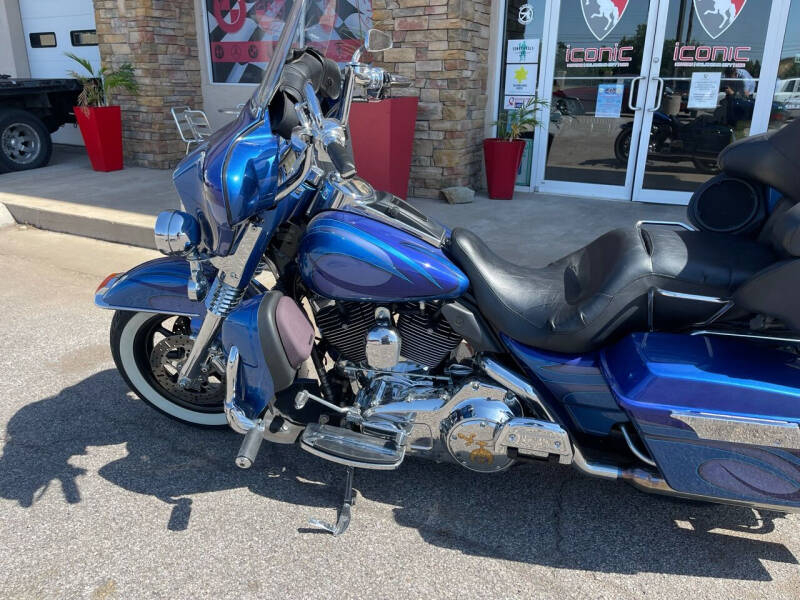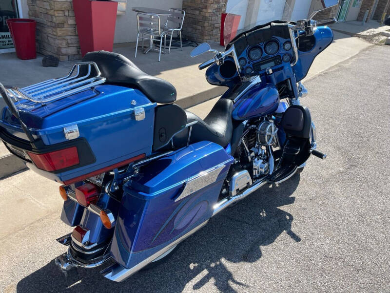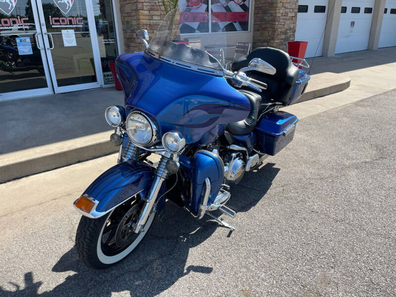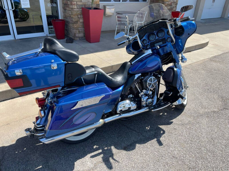 Take a ride on the wild side with this custom paint three-tone blue 2007 Harley-Davidson Electra Glide Ultra Limited. With its sleek and stylish design, this Harley-Davidson is sure to turn heads wherever you go. The three different shades of blue blend together seamlessly, creating a unique and eye-catching look that sets this bike apart from the rest.