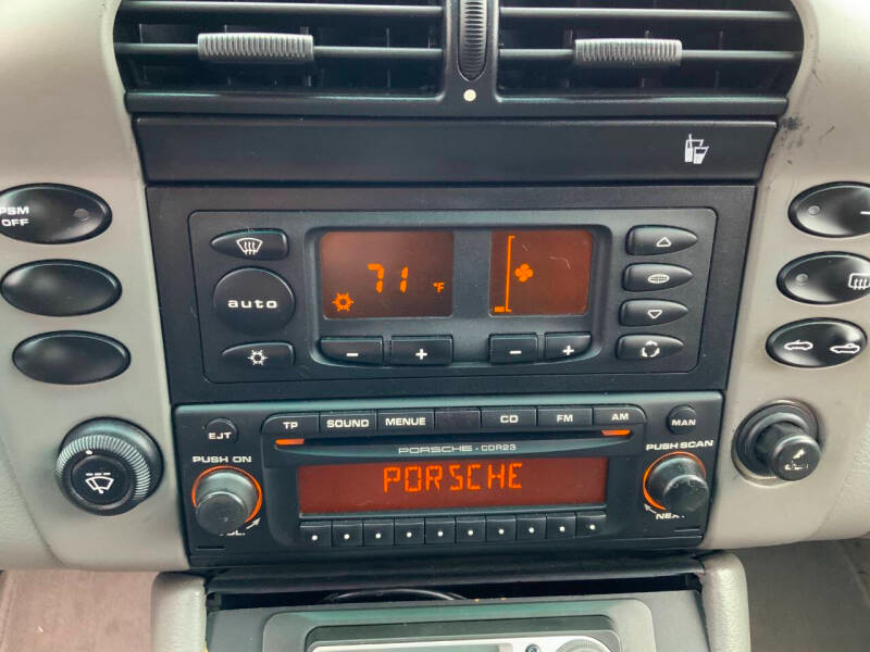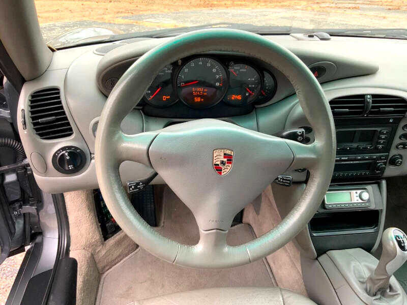 Get ready to hit the road in style with this sleek Silver 2003 Porsche 911! This luxury car is not just a beauty to look at, but it's also equipped with top-of-the-line safety features to keep you secure on all your adventures. From its powerful ABS brakes to its multiple airbags strategically placed throughout the vehicle, you can drive with peace of mind knowing you're in good hands. You'll love the convenience of the keyless entry system and power door locks, making getting in and out of your car a breeze. Fuel your wanderlust with the AM/FM radio and CD player as you cruise along in ultimate comfort on the leather seats. Equipped with alloy wheels and a rear spoiler, this Porsche is sure to turn heads wherever you go. Plus, you'll have access to the car's history with a detailed Carfax report available for your peace of mind. Don't miss out on this incredible opportunity to own a piece of luxury and performance all in one package!